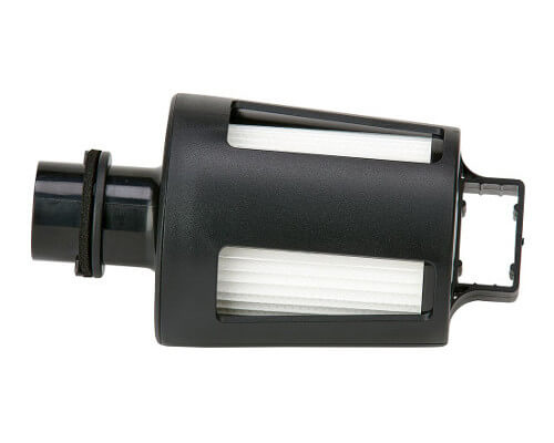 Used to diffuse the air that blows out of the exhaust while vacuuming. Screw in the filter, then slide your Butler crevice tool into the tool holder at the end