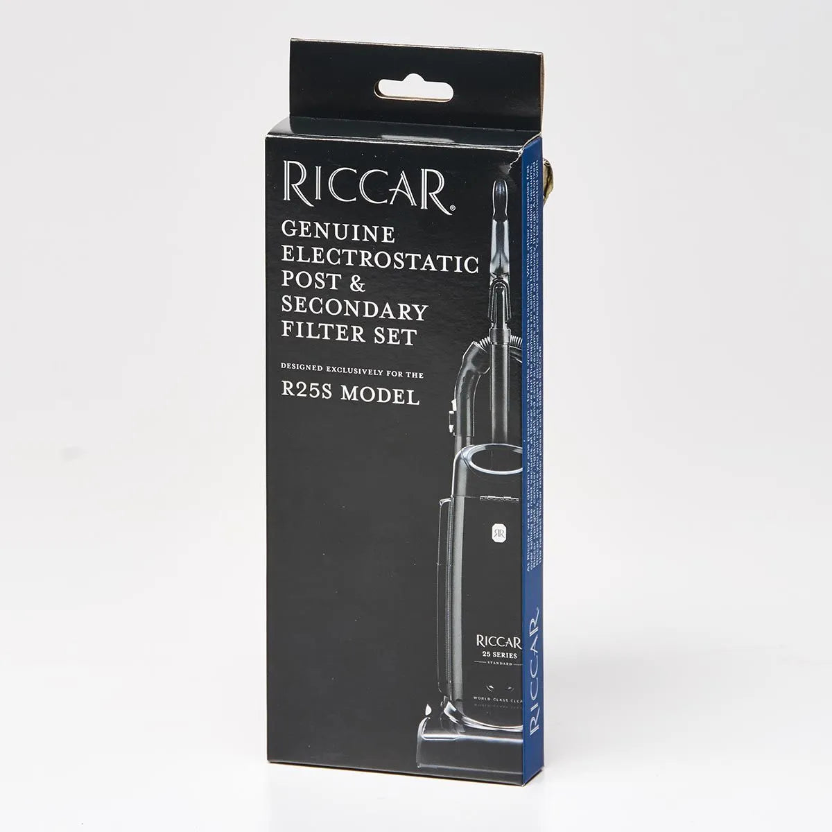 Riccar R25S Electrostatic Post And Secondary Filter - Filter set for the R25S. Filter set for the R25S includes one electrostatic post filter and one electrostatic secondary filter. Electrostatic Post filter size: 3.5 x 4.25 Inches Secondary filter size: 3.13 x 2 inches, Package size: 3.7 x 10 x 0.9 Inches.
