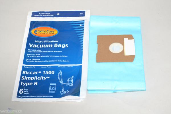 Package contains 6 Simplicity replacement canister vacuum bags Type H. Type H micro filtration disposable paper vac bags by EnviroCare.