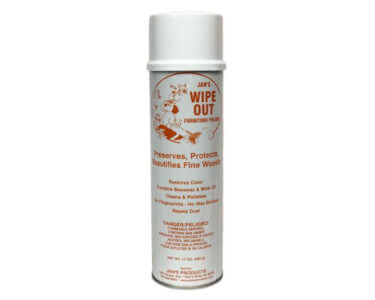 WipeOut Furniture Polish cleans away dust, fingerprints, stains and smudges. Leaves behind a beautiful, long lasting shine. Replaces essential oils to neutral or treated wood surfaces. Restores color and luster to fine woods without excess rubbing. Eliminates minor scratches and blemishes. 17oz aerosol can.
